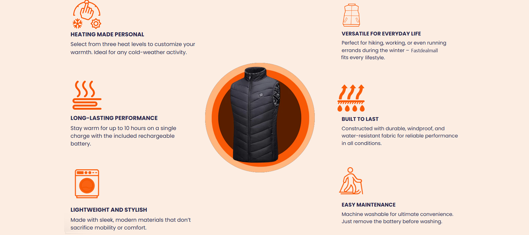 The ultimate winter essential: warmth, smarts, and style—all in the Fastdealmall Heated Vest.
